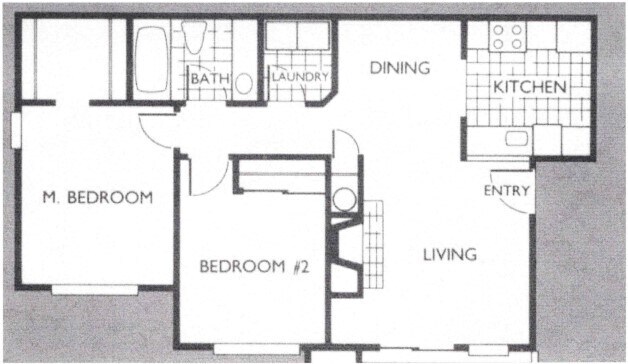 Two Bed One Bath - Floorplan 1 Two Bed Two Bath