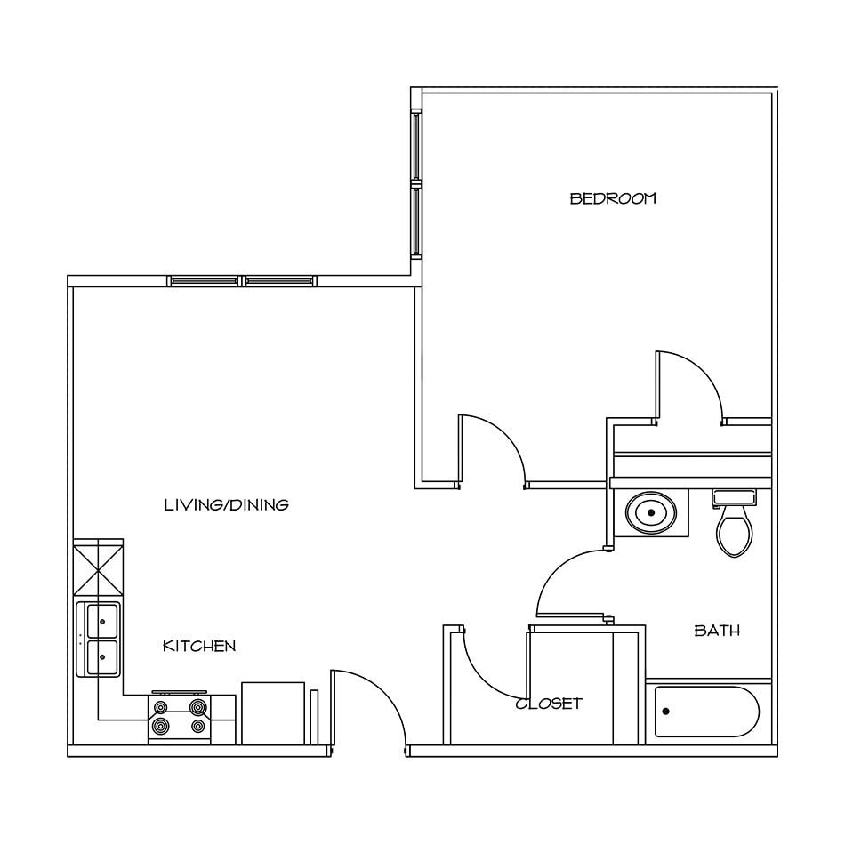 1 Bedroom, 1 Bathroom - Floorplan 1 ![]()
