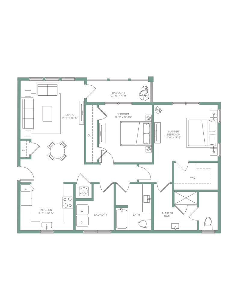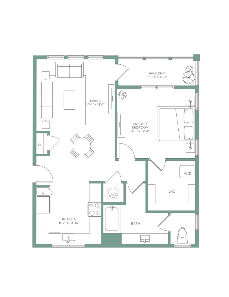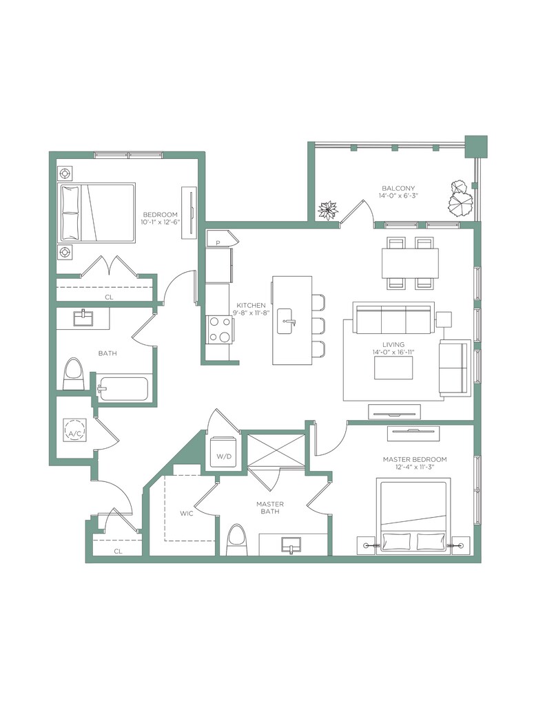 Apartment Model: A4From $1,3861 Bedroom, 1 Bath, 752 sq ftAvailable Now![]()