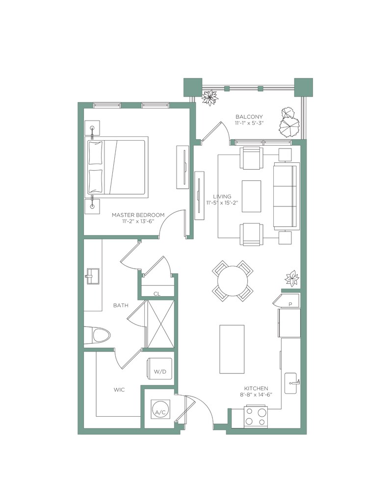 Apartment Model: A5From $1,4571 Bedroom, 1 Bath, 803 sq ftAvailable Now![]()