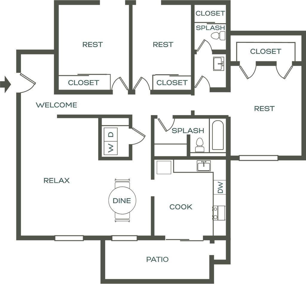 3 Beds, 2 Baths, 1262 sq ftAvailable NowModel Gallery