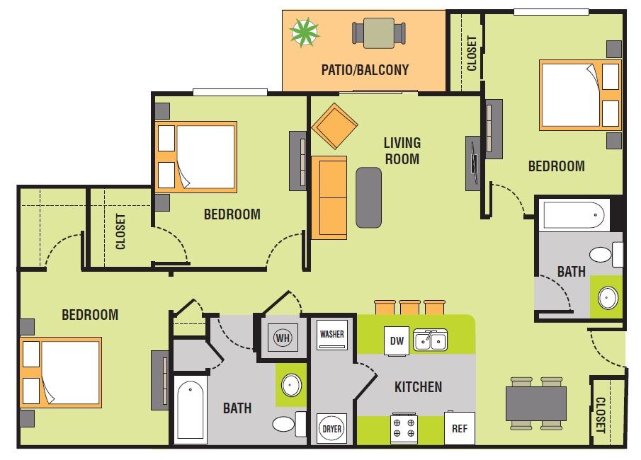 Apartment Model: 3BRCall For Rates3 Bedroom, 2 Bath, 1206 sq ftUnavailable3BR - Floorplan 1