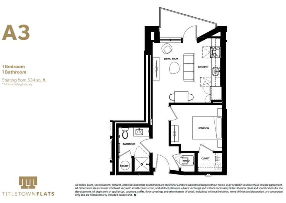 TitletownFlats offers Studio to 3 Bedroom apartments starting from $1,550 and having 439–1,482 sq ft. Here is the current pricing and availability: