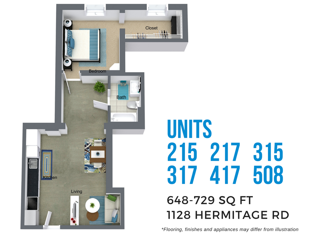 1 Bed, 1 Bath, 648-653 sq ftAvailable NowModel Gallery