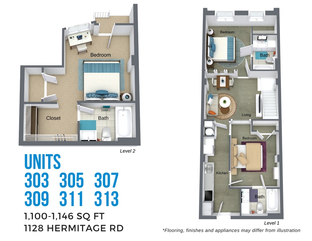 - 580–1,100Square Feet