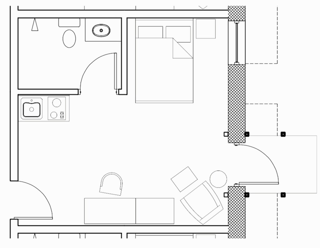 Unit: 402 - Image 8 Apartment Unit: 320Apartment Model: Essential Floorplan$1,199Studio, 1 Bath, 289 sq ftAvailable Now![]()