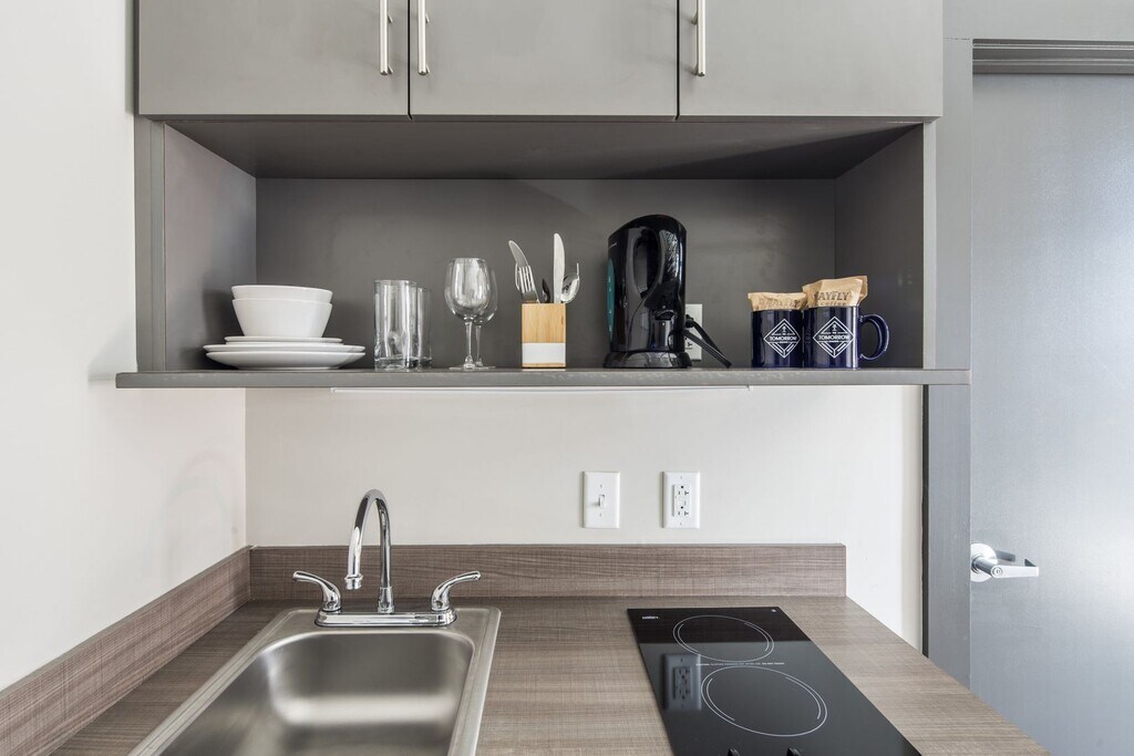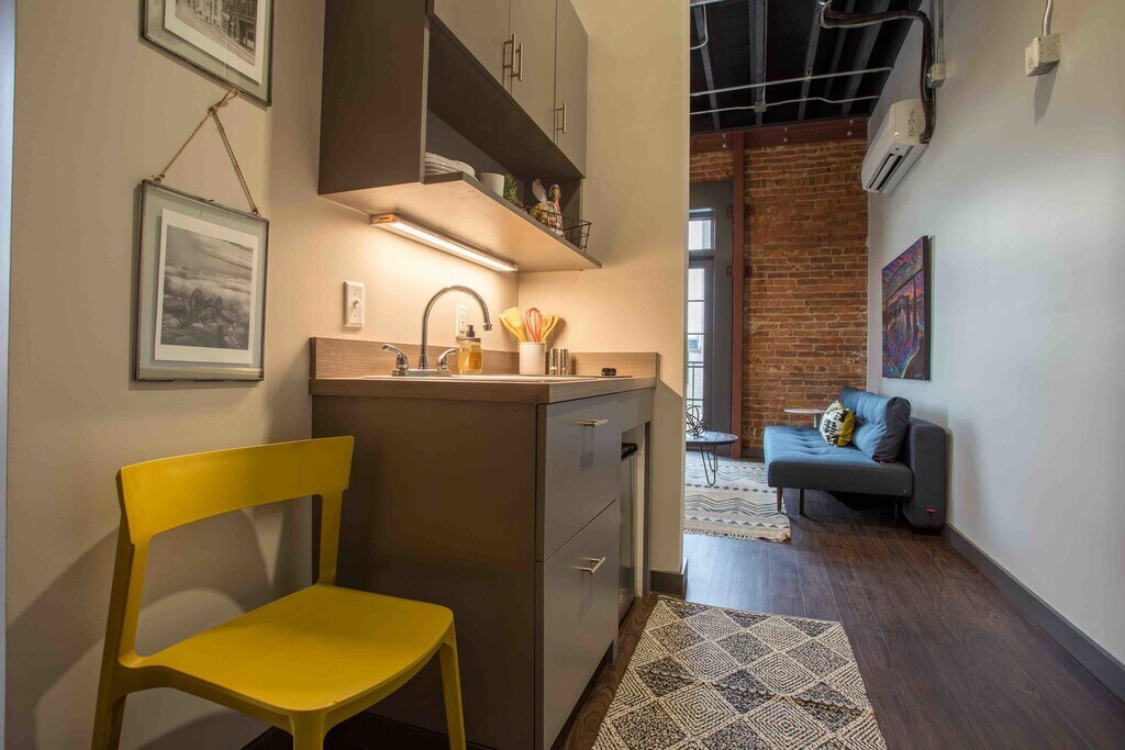 **Get TWO Months FREE ! Available for a limited time only! Ask your leasing agent for more details.** Fully furnished, all inclusive apartments in the heart of downtown! Monthly Rent and Utility Package covers all: water/sewer, electric, EPB Internet service, trash service, pest control, access to amenity areas Apartment Features: Private bathroom with walk-in shower, kitchenette space with cooktop, sink and fridge, hardwood floors, high ceilings, large windows, exposed brick walls, a ceiling fan and furniture package. Community Features: elevator access to all floor levels, a resident lounge, resident living room, two fully stocked community kitchens, on site laundry facility, community wifi. Flexible lease terms available on select units. Monthly short term fees not included in monthly rental price. Application Fee: $75 Admin Fee: $250