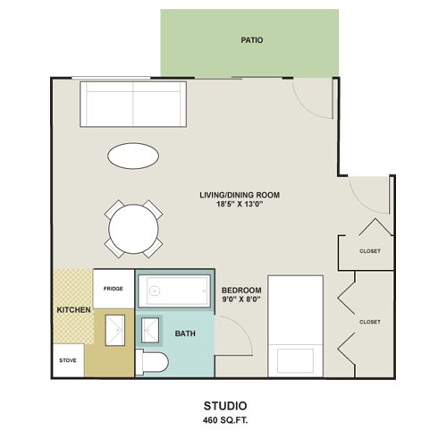 Studio, 1 Bath, 460 sq ftModel Gallery