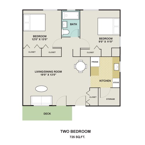 2 Beds, 1 Bath, 725 sq ftModel Gallery