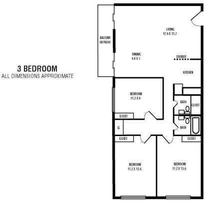 Apartment Model: 2Bedroom 1Bathroom2 Bedroom, 1 Bath, 814 sq ftUnavailable2Bedroom 1Bathroom - Floorplan 1 3 Bedrooms