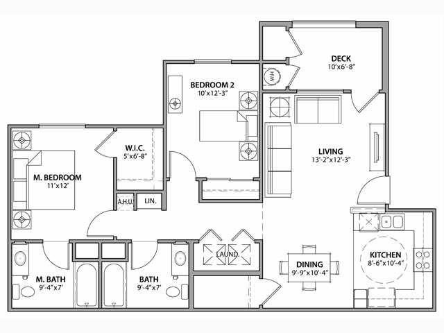Apartment Model: Plan 22 Bedroom, 2 Bath, 987 sq ftUnavailablePlan 2 - Floorplan 1 3 Bedrooms