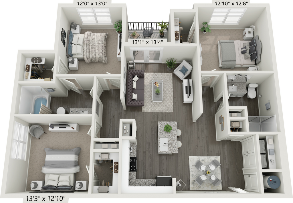 Apartment Model: 3x2 NS - Three Bedroom, Two BathroomCall For Rates3 Bedroom, 2 Bath, 1291 sq ftUnavailable3x2 NS - Three Bedroom, Two Bathroom - Floorplan 1