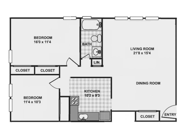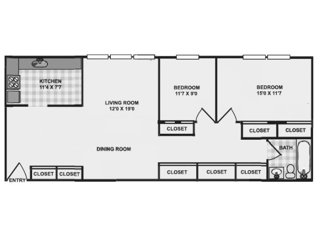Loads of Closets! 2 br / 1 bath - D Style - Floorplan 1 Economical Floorplan - 2 br / 1 bath - B Style