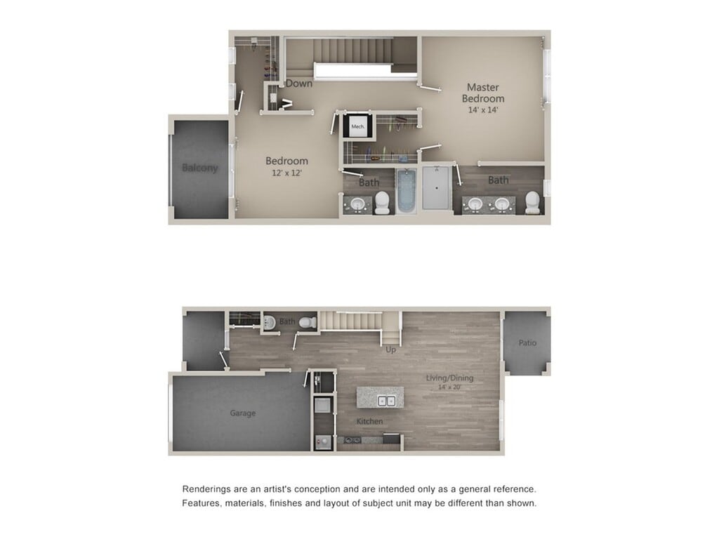 2 Beds, 2.5 Baths, 1393 sq ftModel Gallery