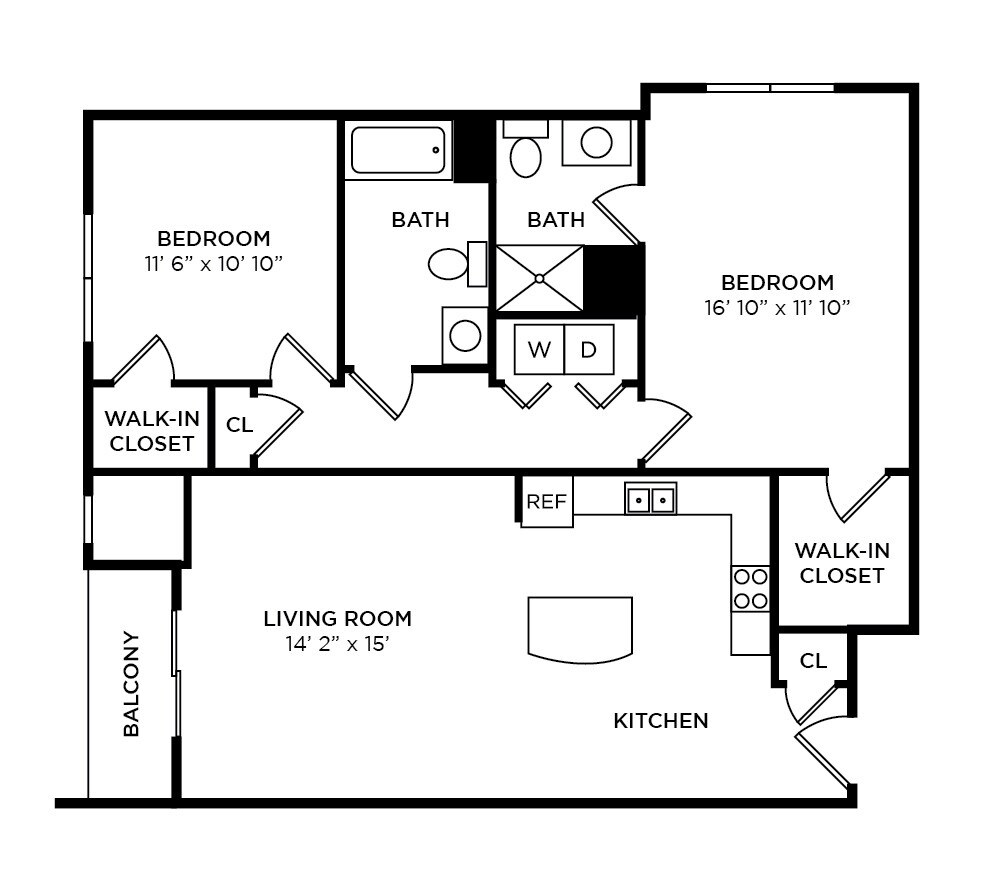 2 Beds, 2 Baths, 1152 sq ftAvailable Nov 8Largest 2 BedroomThis is the largest 2 Bedroom at this PropertyModel Gallery
