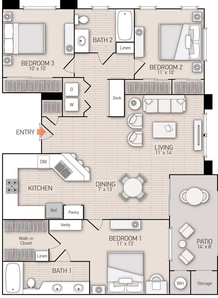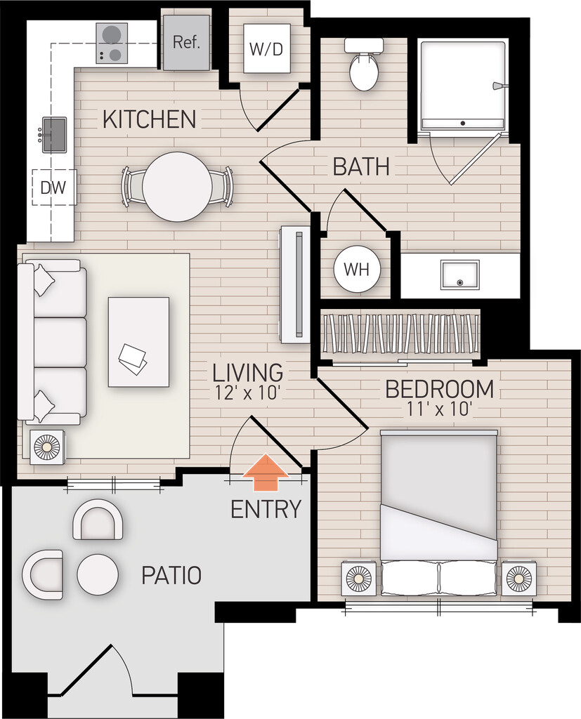 1 Bed, 1 Bath, 797 sq ftAvailable NowLargest 1 BedroomThis is the largest 1 Bedroom at this PropertyModel Gallery