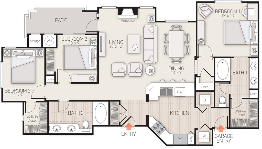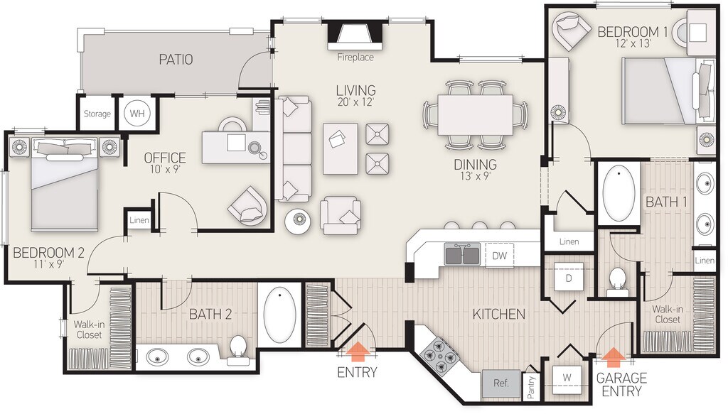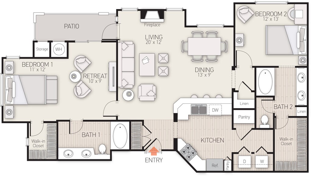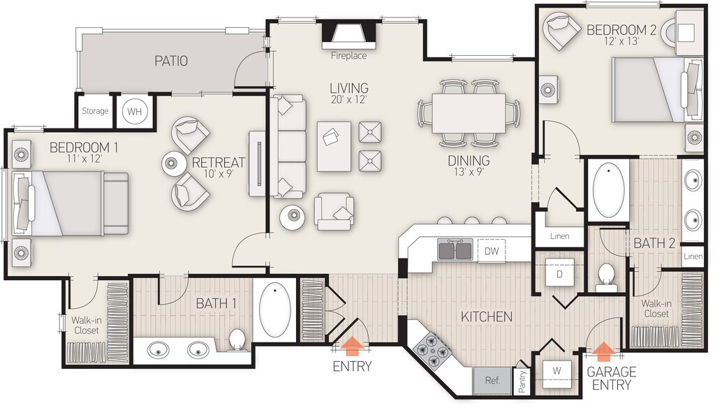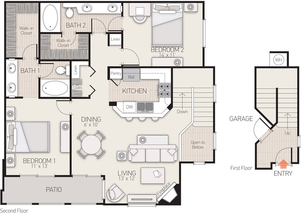 2 Beds, 2 Baths, 1365 sq ftAvailable NowModel Gallery