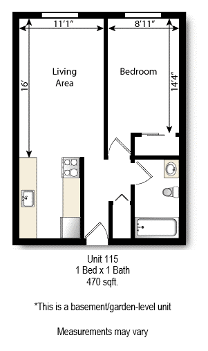 1 Bed, 1 Bath, 470 sq ftAvailability Details