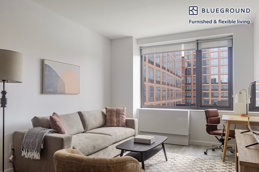 Discover the best of New York, with this one bedroom apartment in Greenpoint with views over the city. It’ll be easy to simply show up and start living in this furnished apartment with its fully equipped kitchen, living room, and our dedicated, on-the-ground support. (ID #NYC1909) The advertised rate of $4,590/month is the lowest available price, based on a 12 month(s) stay with a move-in date of December 13, 2025. Rates vary depending on the duration of stay, season, and other parameters. For exact pricing and additional pricing components, please visit our website and enter your desired move-in and move-out dates. The rate is applicable when billed upfront; it can be higher if billed in multiple payments. Brokers are welcome to reach out. Were you looking for an unfurnished lease? Try Blueground instead and upgrade from unfurnished to furnished living: - Furnished at rates comparable to unfurnished - No setup or furniture costs - save thousands - Move-in ready - save time, just bring your suitcase Designed with you in mind Thoughtfully designed with bespoke finishes, modern furnishings, and a fully equipped kitchen, you’ll enjoy that “I’m home” feeling with this Blueground apartment. Whether you’re lounging in your stylish living room streaming the latest and greatest entertainment on the smart TV or premium wireless speaker, or getting some well-earned rest on the superior quality mattress with luxury linens, you’ll fall in love with everything this Greenpoint apartment has to offer. Sleeping arrangements Queen Bed, 63in/160cm Amenities Building amenities unique to this one bedroom apartment include an on-site: - Basketball Court - BBQ Area - Doorman - Dryer in building - Elevator - Game room - Swimming pool - Washing machine in building - Lounge - Pets allowed - Playroom - Sauna - Tennis court Arrival and ongoing support The entire apartment is yours to enjoy! Throughout your stay, you’ll have access to our Client Experience team through the Blueground App. You can schedule additional cleanings, submit maintenance requests, and view our neighborhood recommendations with just a few taps. We’ll share all details upon confirmation of your stay. Ideally Located This furnished apartment is located in Greenpoint, a historic Brooklyn neighborhood that is known for its eclectic food scene and quiet, tree-lined blocks. This lovely area is frequently used as a backdrop for TV shows, thanks to its proximity to Long Island City's Silvercup Studios. Greenpoint's food scene is concentrated along Manhattan Avenue, one of the neighborhood's major thoroughfares. You can find everything from world-renowned donuts to vegan comfort food to authentic Polish cuisine, as well as plenty of bars serving craft cocktails. On the weekend, head to Transmitter Park for gorgeous East River views or walk to trendy Williamsburg to check out hip boutiques and art galleries. Greenpoint is served by the G line of the New York City subway system. Other things to note Building amenities may have an extra cost. This Blueground apartment has flexible lease options, allowing you to book it for one month, a year, or more. Pets are welcome, though weight limits and breed restrictions apply and may incur fees. Brokes CYOF. We take great pride in ensuring every photo displayed is shot in our own units with our actual furnishings. That said, we regularly refresh our decor and furniture arrangement, which may differ from what’s pictured.