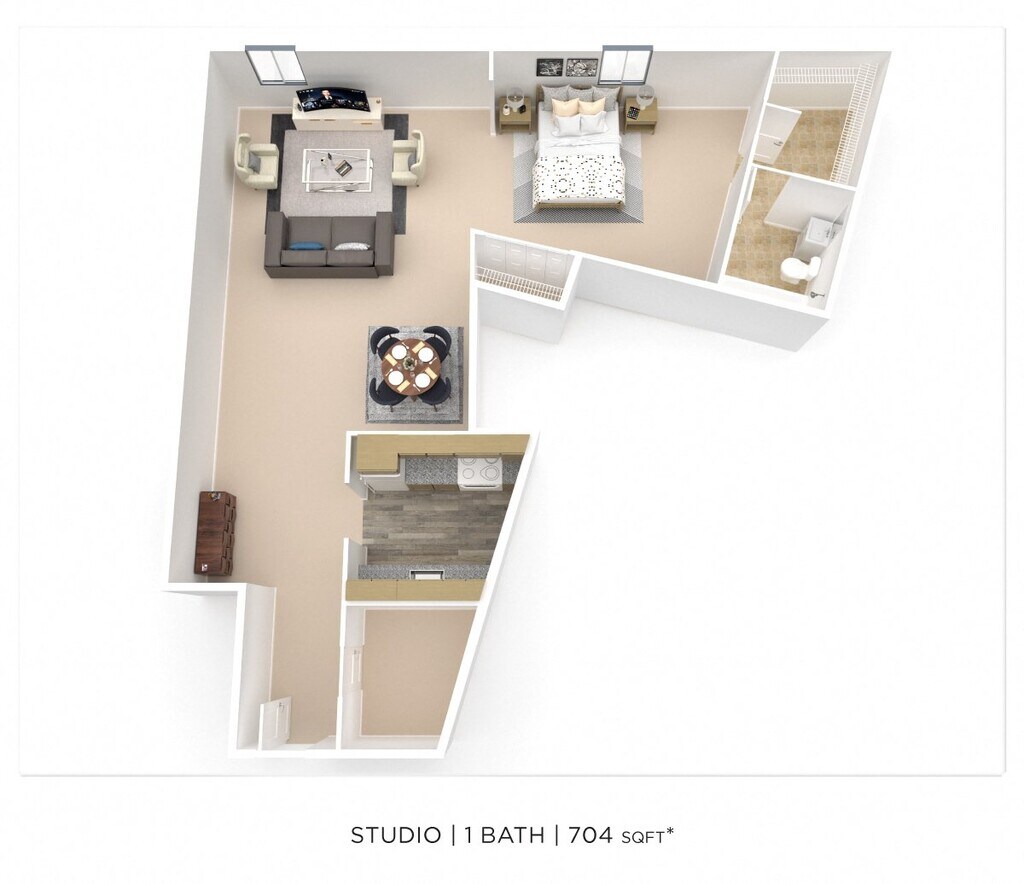 Studio-704 sqft - Floorplan 2 1 Bedroom