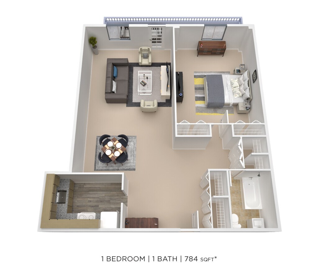 1 Bed, 1 Bath, 784 sq ftAvailable NowModel Gallery