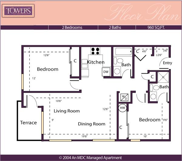 2 Beds, 2 Baths, 960 sq ftAvailable NowModel Gallery