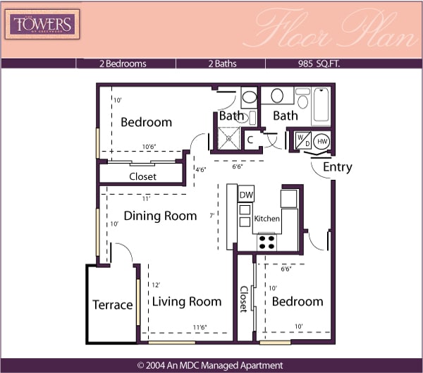 2 Beds, 2 Baths, 985 sq ftAvailable NowModel Gallery