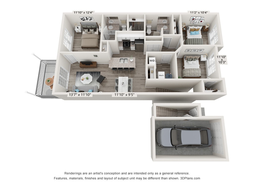Apartment Model: 3DRFrom $2,0603 Bedroom, 2 Bath, 1268 sq ftAvailable Now3DR - Floorplan 1