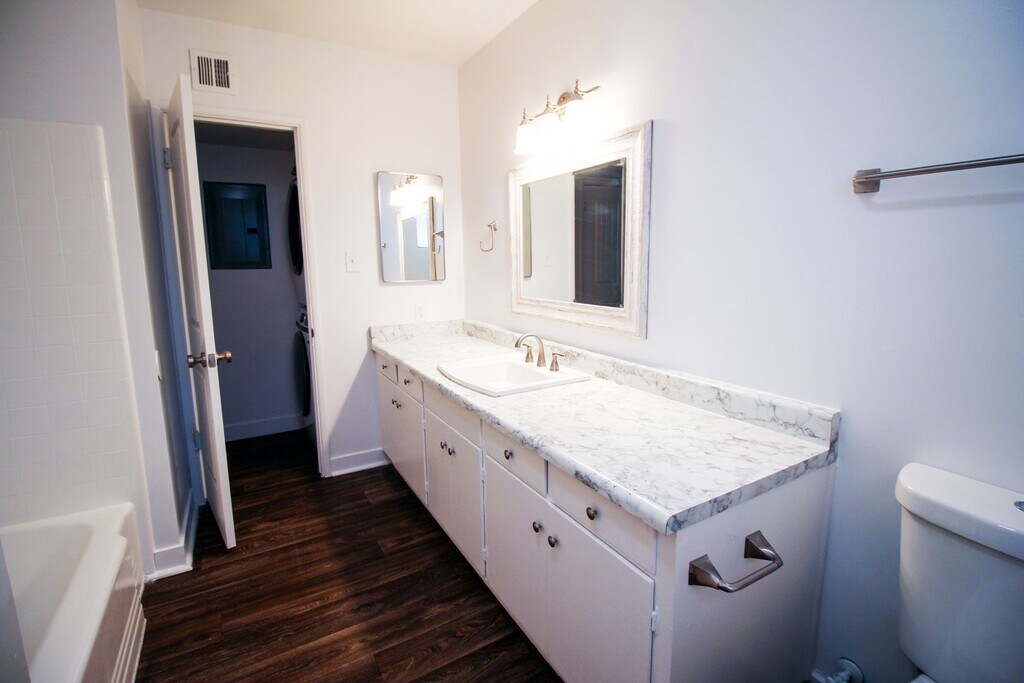 1 and 2 bedroom homes Upgraded 1 level garden style No neighbor above French doors to courtyard view Huge kitchen All wood plank Washer and Dryer inside (optional $40 monthly fee) Stainless appliances Covered reserved parking + lots of extra for guests Resident pays SRP Included: water/sewer/trash 12 month lease