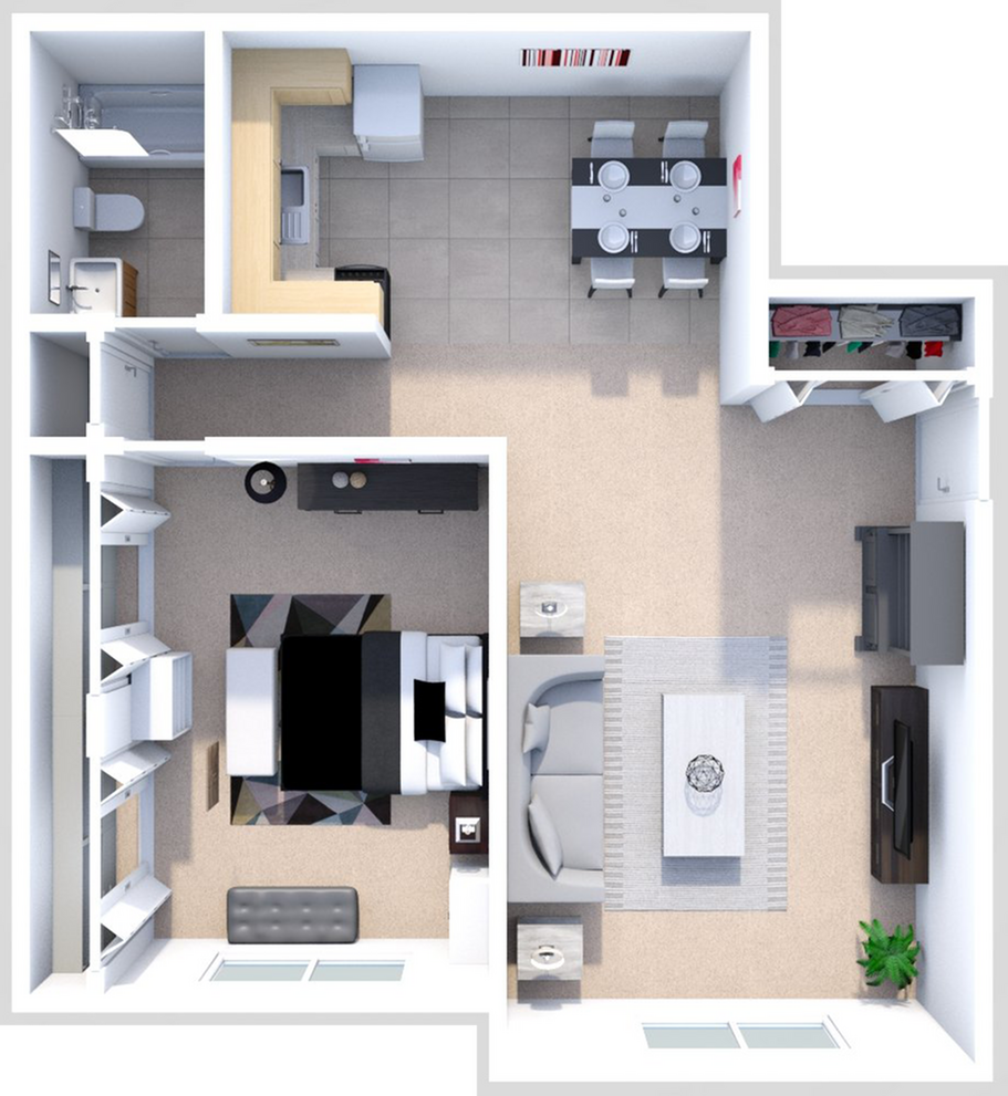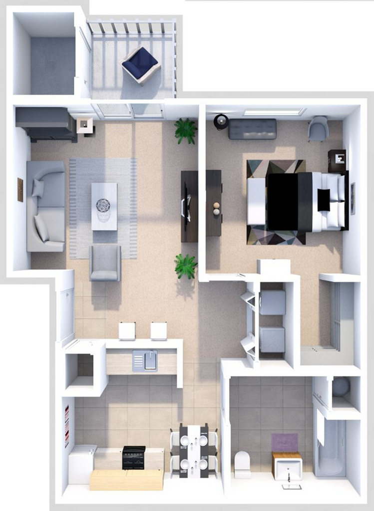 1 Bed, 1 Bath, 590 sq ftAvailable NowModel Gallery