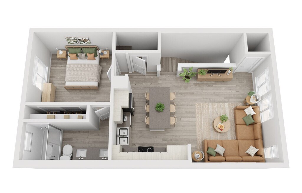 Atlanta - Floorplan 1 Floor plans are artist's rendering. All dimensions are approximate. Actual product and specifications may vary in dimension or detail. Not all features are available in every rental home. Prices and availability are subject to change. Base rent is based on monthly frequency. Additional fees may apply, such as but not limited to package delivery, trash, water, amenities, etc. Deposits vary. Please see a representative for details.