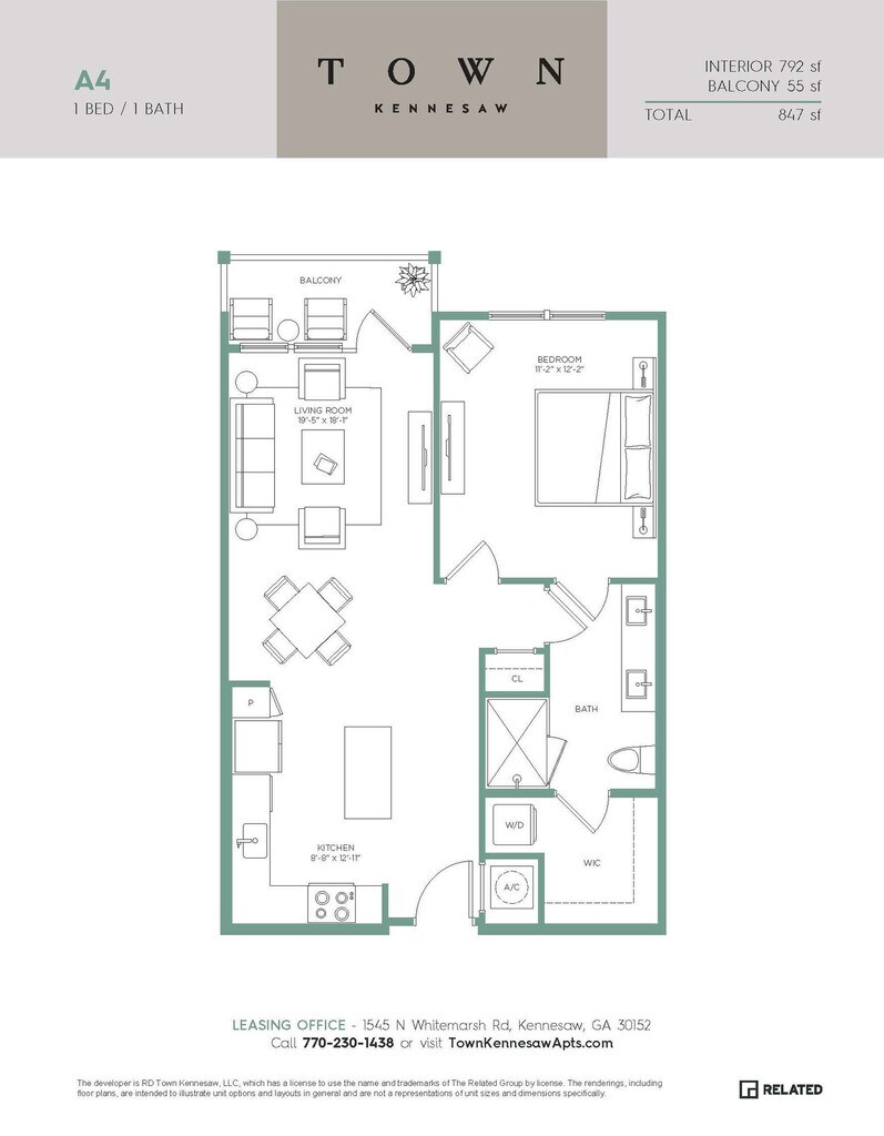 Apartment Model: A4From $1,8991 Bedroom, 1 Bath, 792 sq ftAvailable Now![]()
