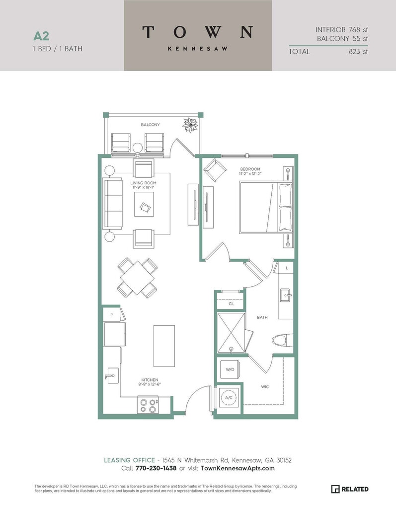 Apartment Model: A2From $1,7151 Bedroom, 1 Bath, 768 sq ftAvailable Now![]()