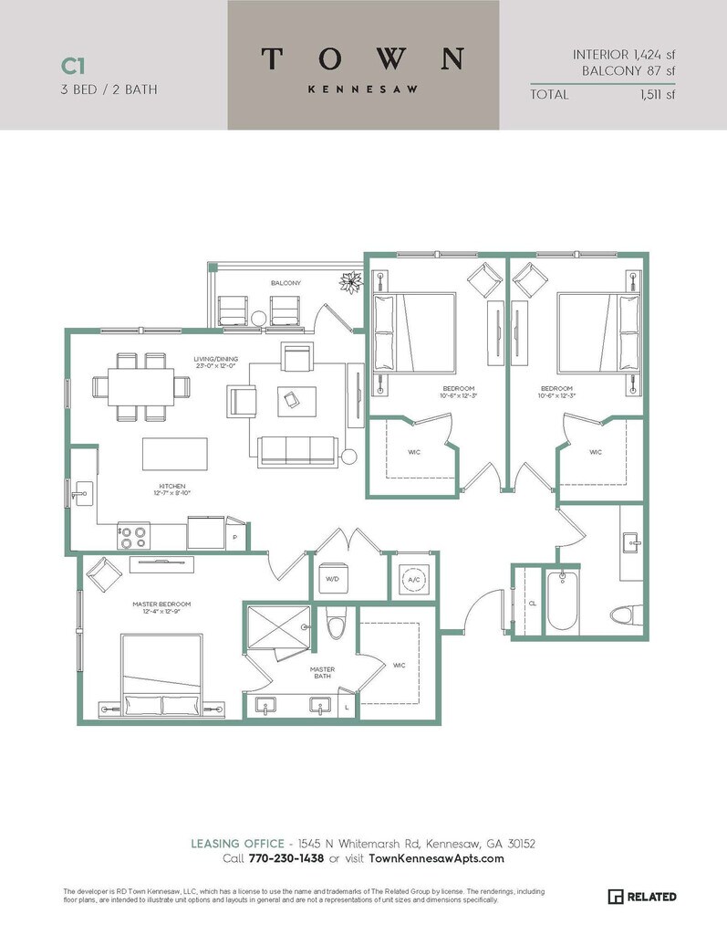 1 Bedroom to 3 Bedroom Apartments at Town Kennesaw currently range from $1,670 to $4,073