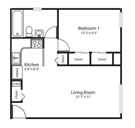 Apartment Model: 1x1$6951 Bedroom, 1 Bath, 550 sq ftUnavailable![]()