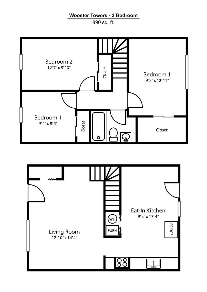 | Wooster 3 Bedroom Apartments | $1,198 | $627 | $1,400 |