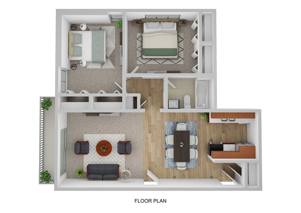 2 Beds, 1 Bath, 750-800 sq ftPlus FeesAvailable NowModel Gallery