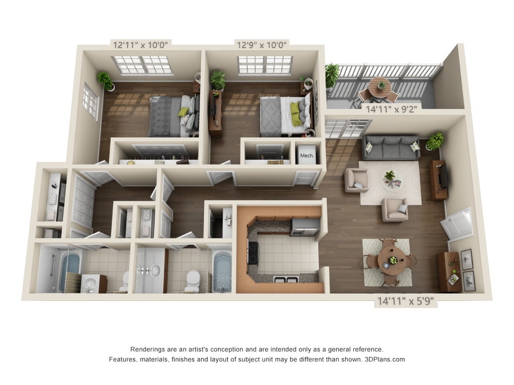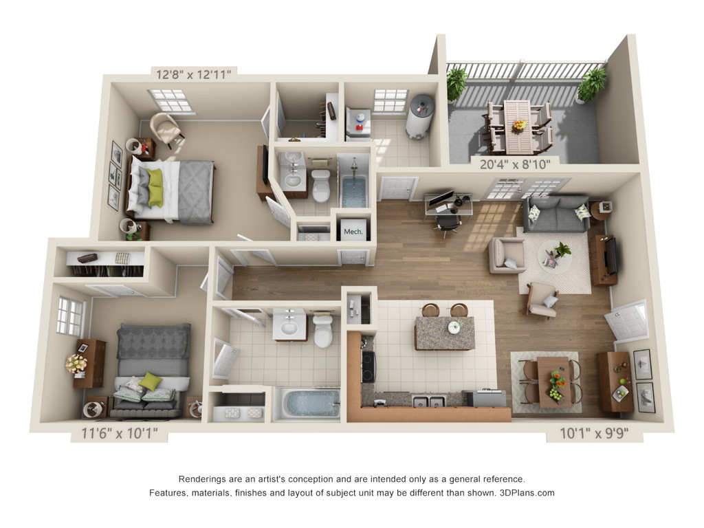 2 Beds, 2 Baths, 1045-1200 sq ftAvailable Dec 3Availability Details