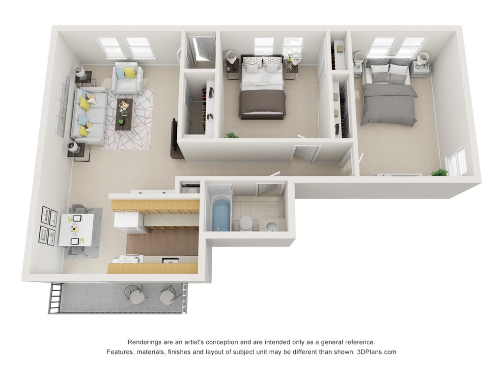 - Two Bedroom, Two Bathroom2 Beds, 2 Baths, 1232 sq ft- Availability Details- Availability Date - Unit - Sq Ft - Call for Availability - Two Bedroom, Two Bathroom - 1232 sq ft - Model Amenities and Features- Features- Air Conditioning