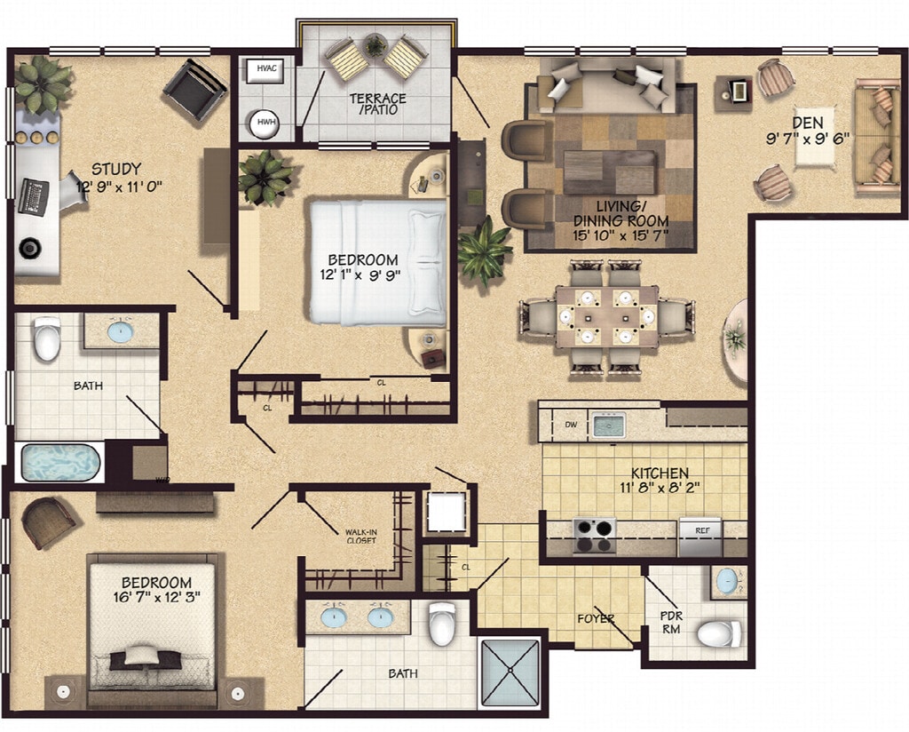 Apartment Model: Broome$3,5952 Bedroom, 2 Bath, 1110 sq ftAvailable Now![]()