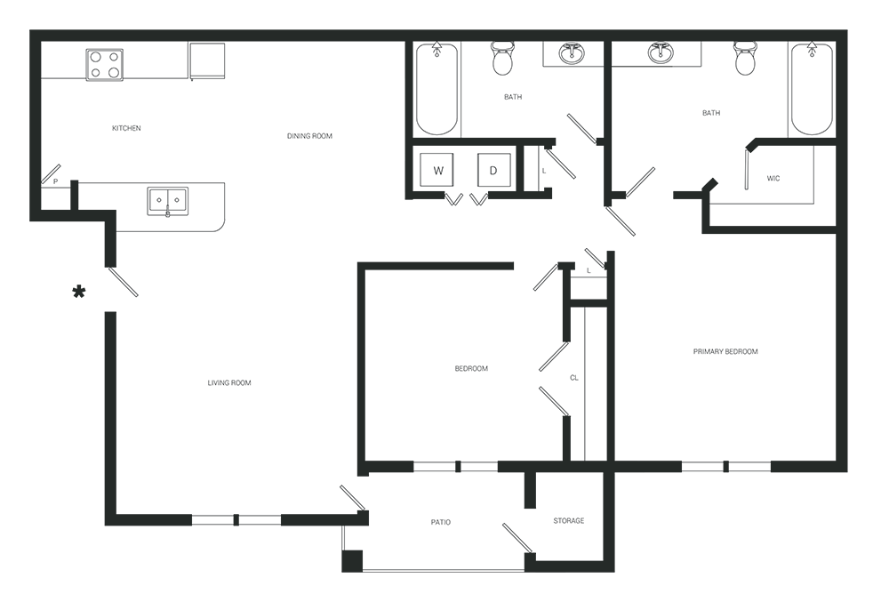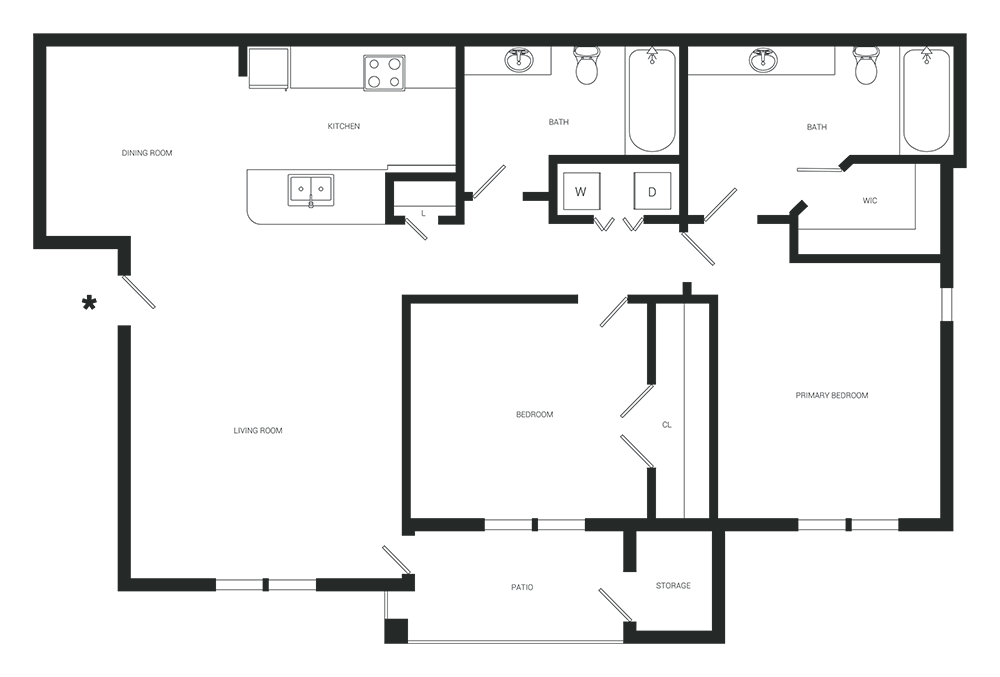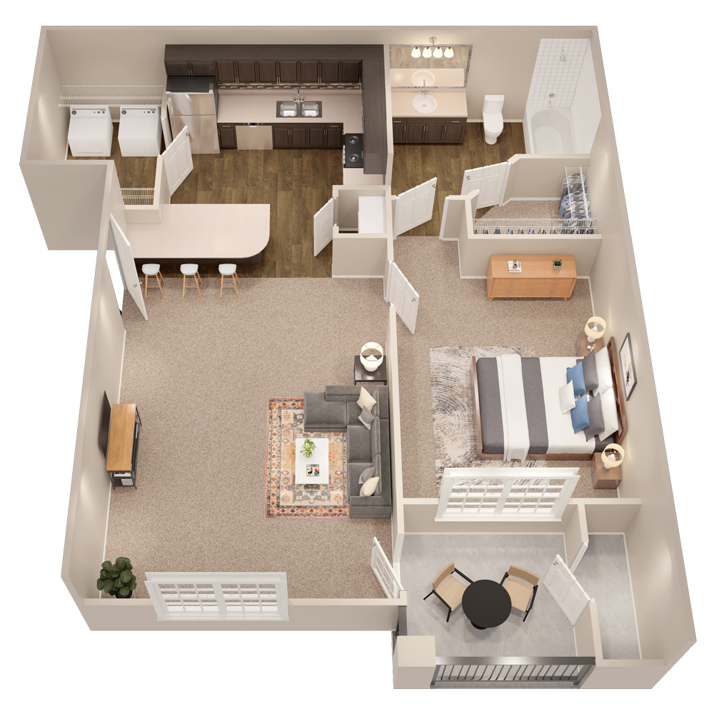1 Bed, 1 Bath, 825 sq ftAvailable NowLargest 1 BedroomThis is the largest 1 Bedroom at this PropertyModel Gallery