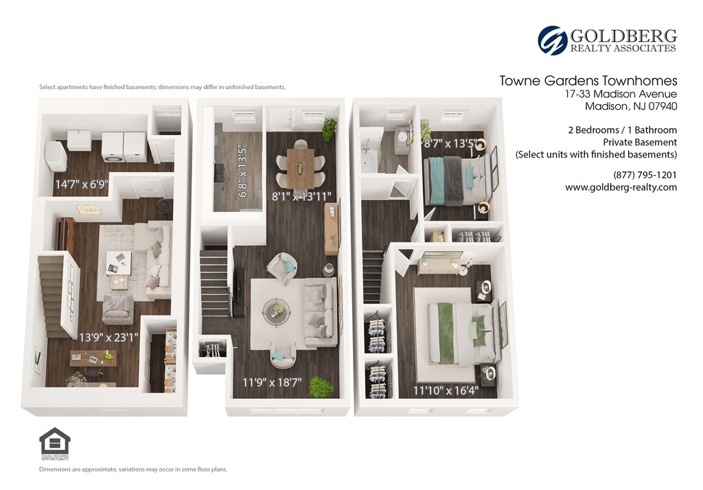 Come visit and see why Madison NJ was recently ranked the #1 place to reside in NJ! Towne Gardens is a gorgeous community of spacious, sunlit, 2-bedroom townhomes located on large, beautifully landscaped, park-like grounds! Our townhomes feature a variety of modern and newly renovated kitchens and bathrooms, living room and dining rooms with crown molding, pristine hard wood flooring, fresh neutral paint throughout, rear private entrances, and private basements (select units with finished basements) all include full size front load washer and dryer. Plus individually controlled heating and central air conditioning systems allow you to set your own comfort zone! With a Walk Score of 74, Towne Gardens is just steps away from the heart of Downtown Madison, where you can enjoy Madisons fine dining, shopping, entertainment, parks, YMCA, Madison Pool, and more! Madison Public Schools are highly rated and have a student-teacher ratio 12-1! A commuters dream, we are conveniently located near the Madison Train Station which provides an easy direct commute to Manhattan NYC in under an hour. Routes 24, 287, 78 and the Garden State Parkway are also minutes away from our community. Experience exceptional living with a personal touch as our friendly and professional management team is on site and provide our residents with 24 hour emergency service. PLEASE CLICK "FLOOR PLANS" TO APPLY FOR ONE OF OUR APARTMENT HOMES OR TO CHECK PRICING/AVAILABILITY *Advertised photos may not be of actual unit available, please contact for more details.