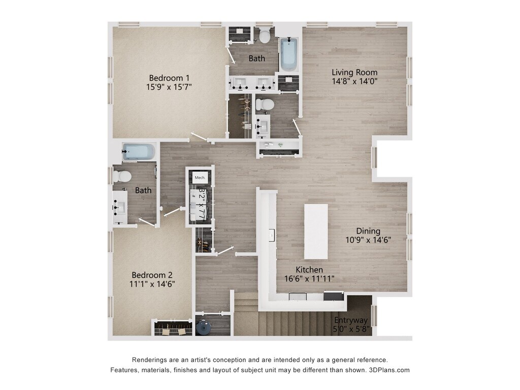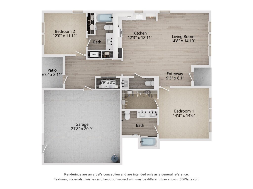 B3C - Floorplan 2 Apartment Unit: 013LApartment Model: B3C$2,0952 Bedroom, 2.5 Bath, 1479 sq ftAvailable NowFloorplan B3B