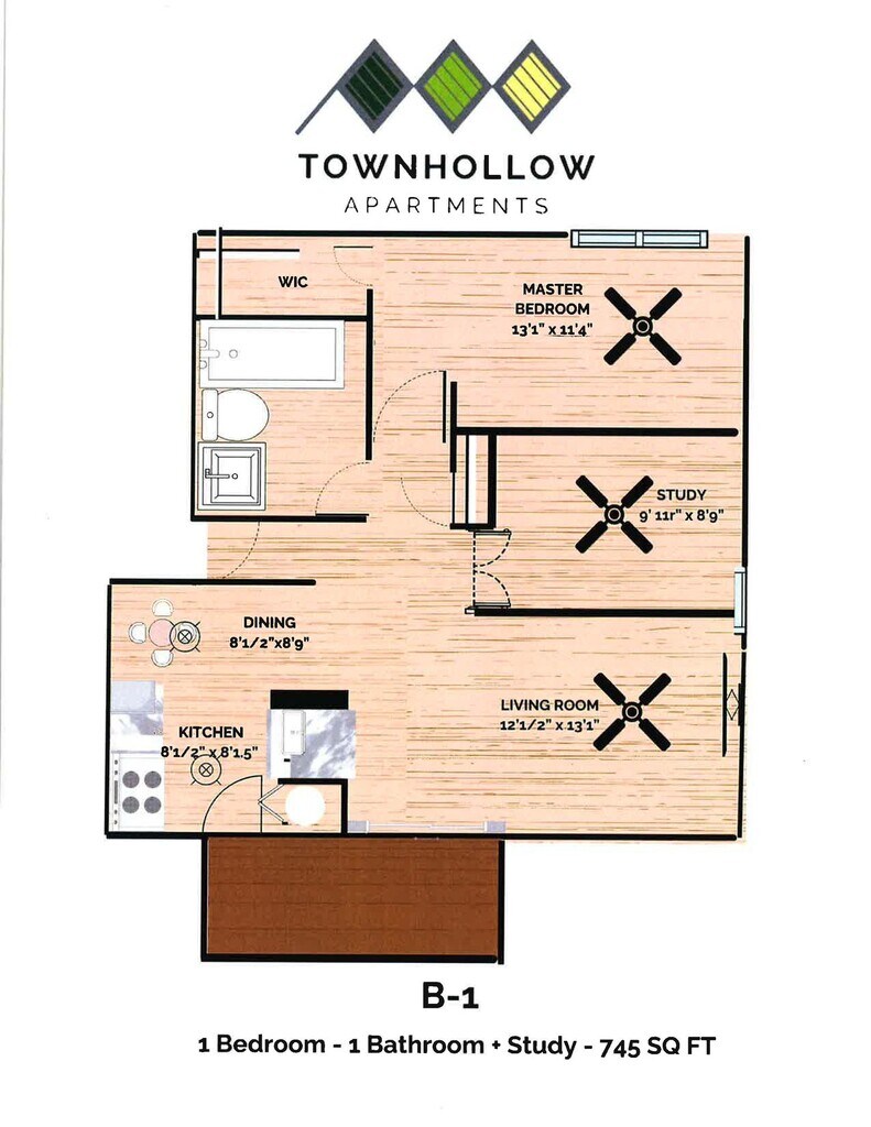 Townhollow Apartments offers Studio to 1 Bedroom apartments starting from $1,225 and having 510–745 sq ft. Here is the current pricing and availability: