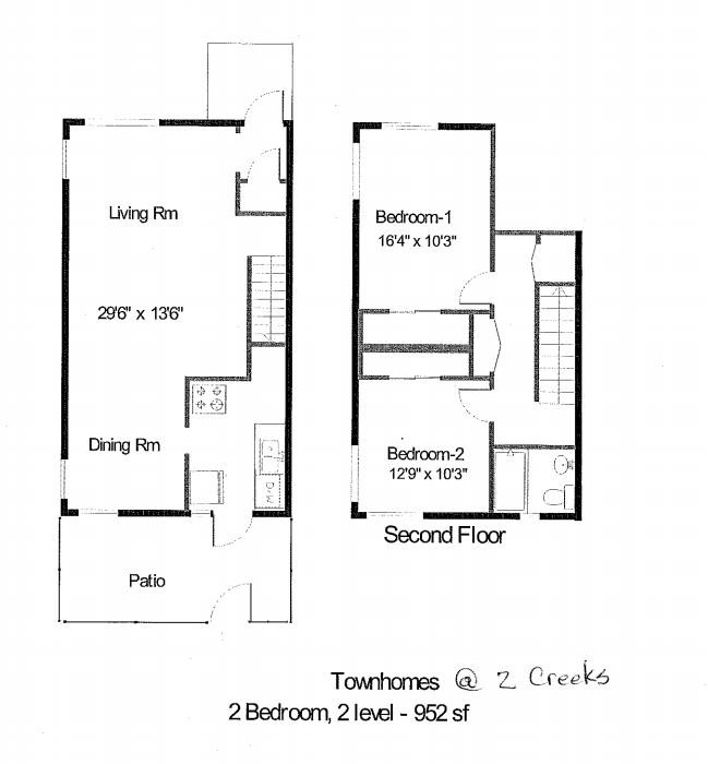 Townhomes at Two Creeks offers 2 Bedroom apartments starting from $1,695 and having 952 sq ft. Here is the current pricing and availability: