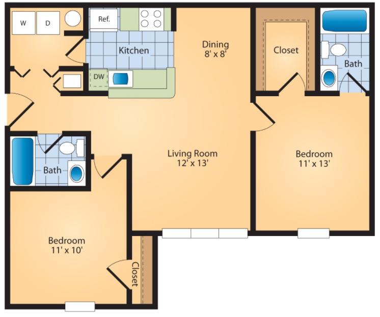 2 Beds, 2 Baths, 894 sq ftAvailable NowModel Gallery