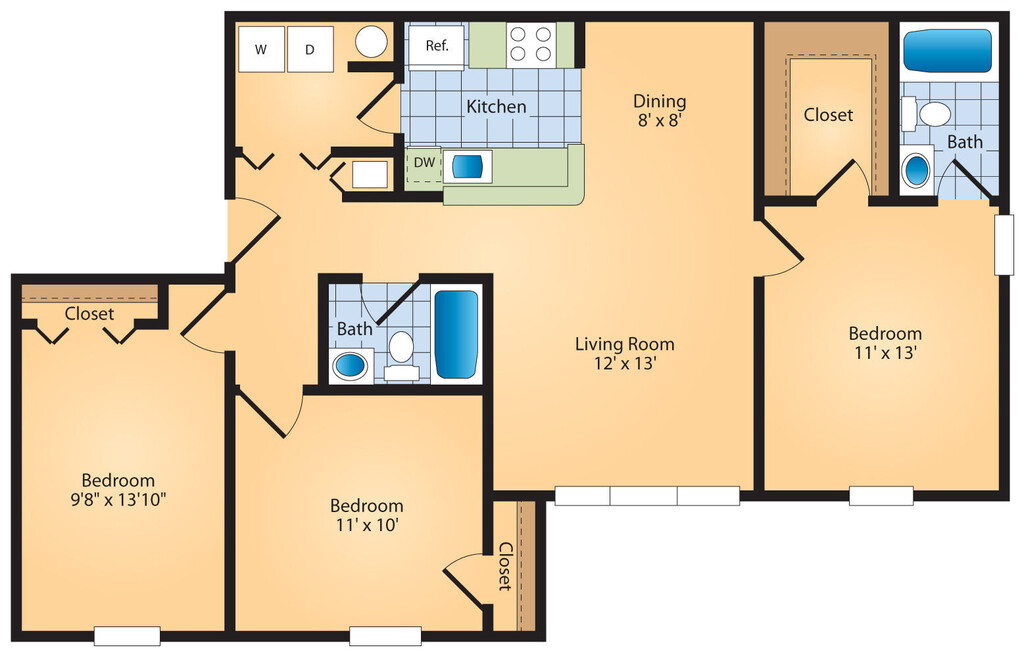 The Stratford - Floorplan 6 Apartment Unit: 28Apartment Model: The Stratford$1,4492 Bedroom, 2 Bath, 894 sq ftAvailable NowApartment Unit: 11Apartment Model: The Stratford$1,4492 Bedroom, 2 Bath, 894 sq ftAvailable NowApartment Unit: 22Apartment Model: The Stratford$1,4492 Bedroom, 2 Bath, 894 sq ftAvailable Now3 Bedrooms