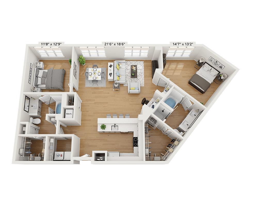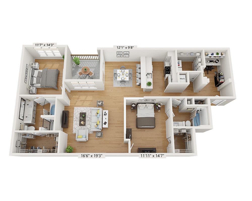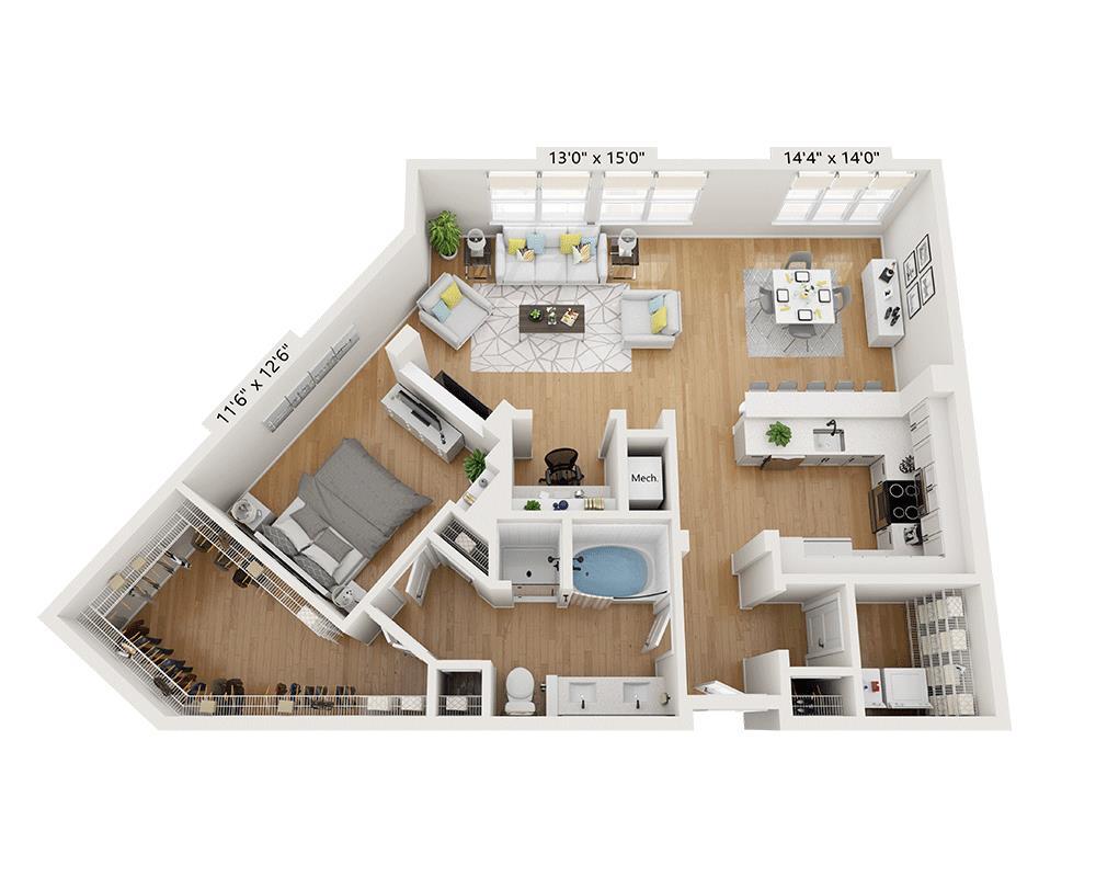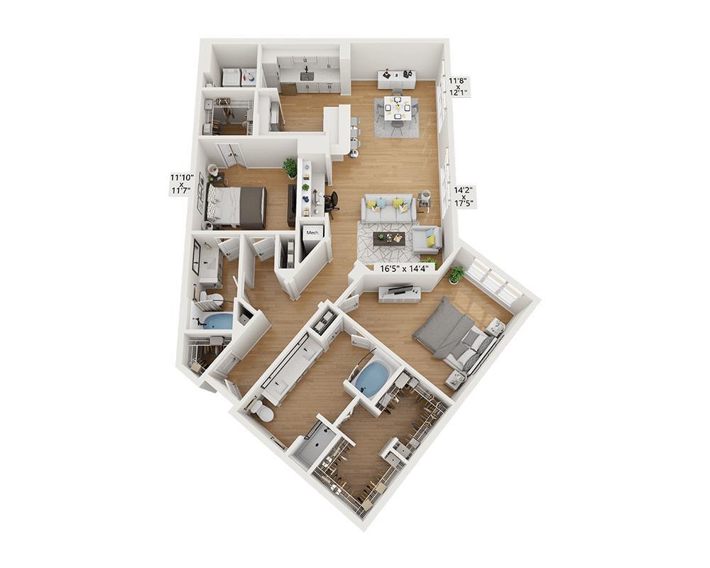 Apartment Model: Plan C (A1C)$1,8671 Bedroom, 1 Bath, 873 sq ftAvailable January 2, 2026![]()