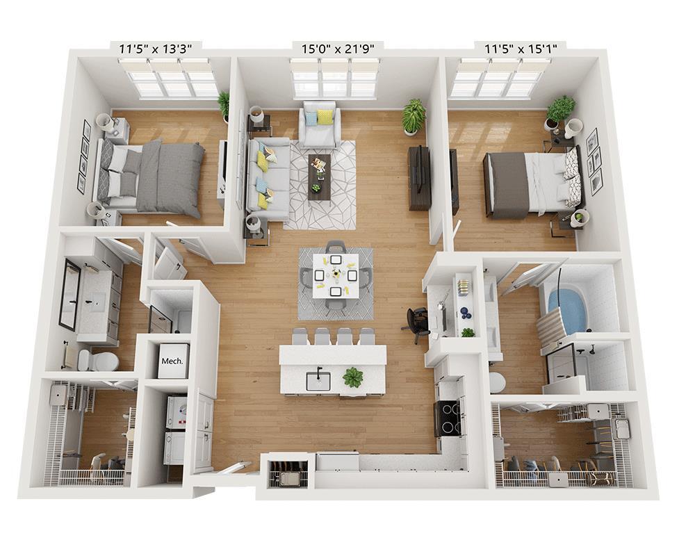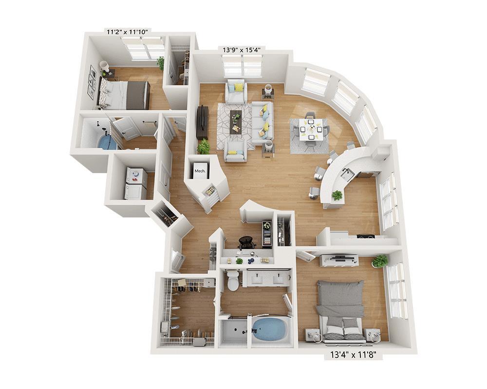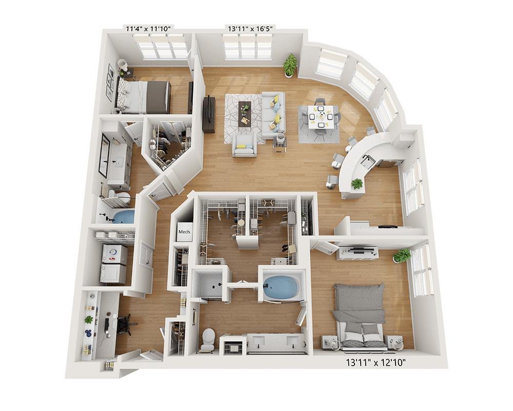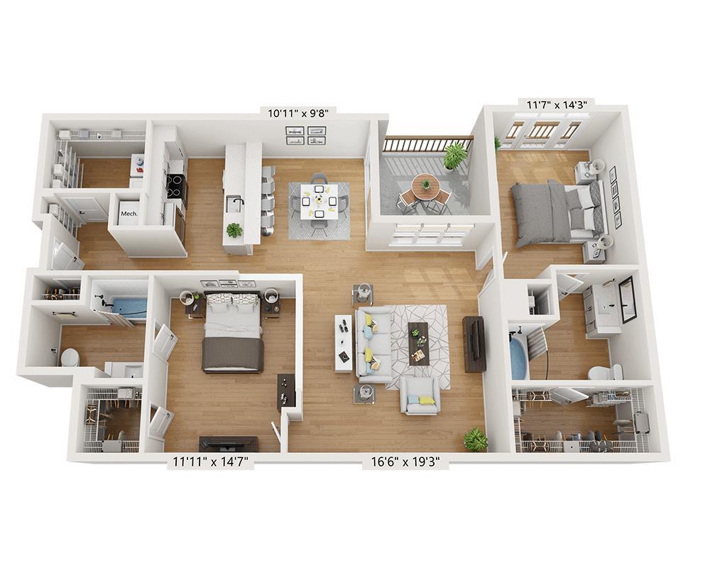 Apartment Model: Plan C (A1C)$1,8671 Bedroom, 1 Bath, 873 sq ftAvailable January 2, 2026![]()