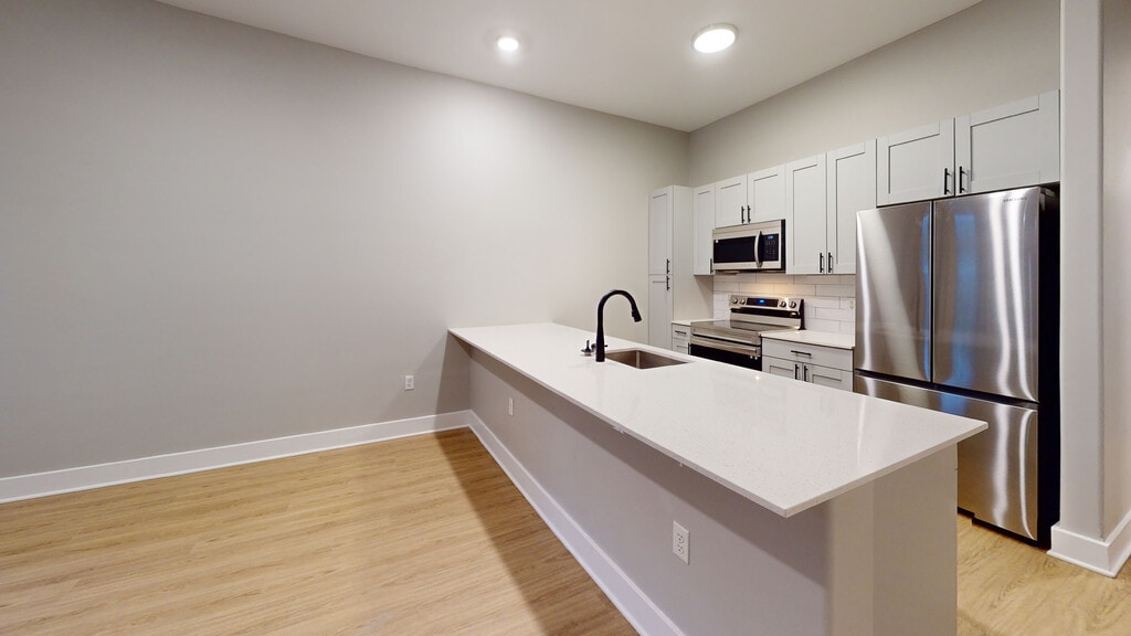 Towson Promenade offers refined apartments, premier services, and upscale amenities. Enjoy a resident club with a catering kitchen, sports lounge, spa-inspired fitness club, three courtyards with grilling and dining areas, and an outdoor pool. Apartments feature hardwood and slate flooring, open kitchens with granite countertops and stainless steel appliances, full-sized washer/dryers, and spacious bedrooms fitting king-size beds. Select renovated units include grey cabinets, quartz countertops, wood plank flooring, and roller shades. Located near Towson University and Towson Town Center Mall and minutes from Baltimore. License #RHM-2023-00313.